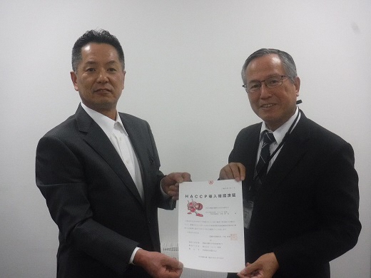 平成31年4月12日 豊橋市ええじゃないかHACCP導入確認済証の交付(株式会社 食研)