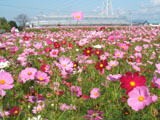 豊橋市大村の少年補導員が中心になり、地元の農業委員も協力して栽培したコスモスが畑一面に咲きました。小学校近くの休耕農地(約1300平方メートル)に、草丈を短くするために通常より遅い8月下旬に種を播いて、小さな子供の低い目線でも楽しんでもらえるようにしました。小学生が写真教室で写真の撮影方法を学ぶため訪れたり、保母さんが保育園児を遊びにつれてきたりと大変好評でした。