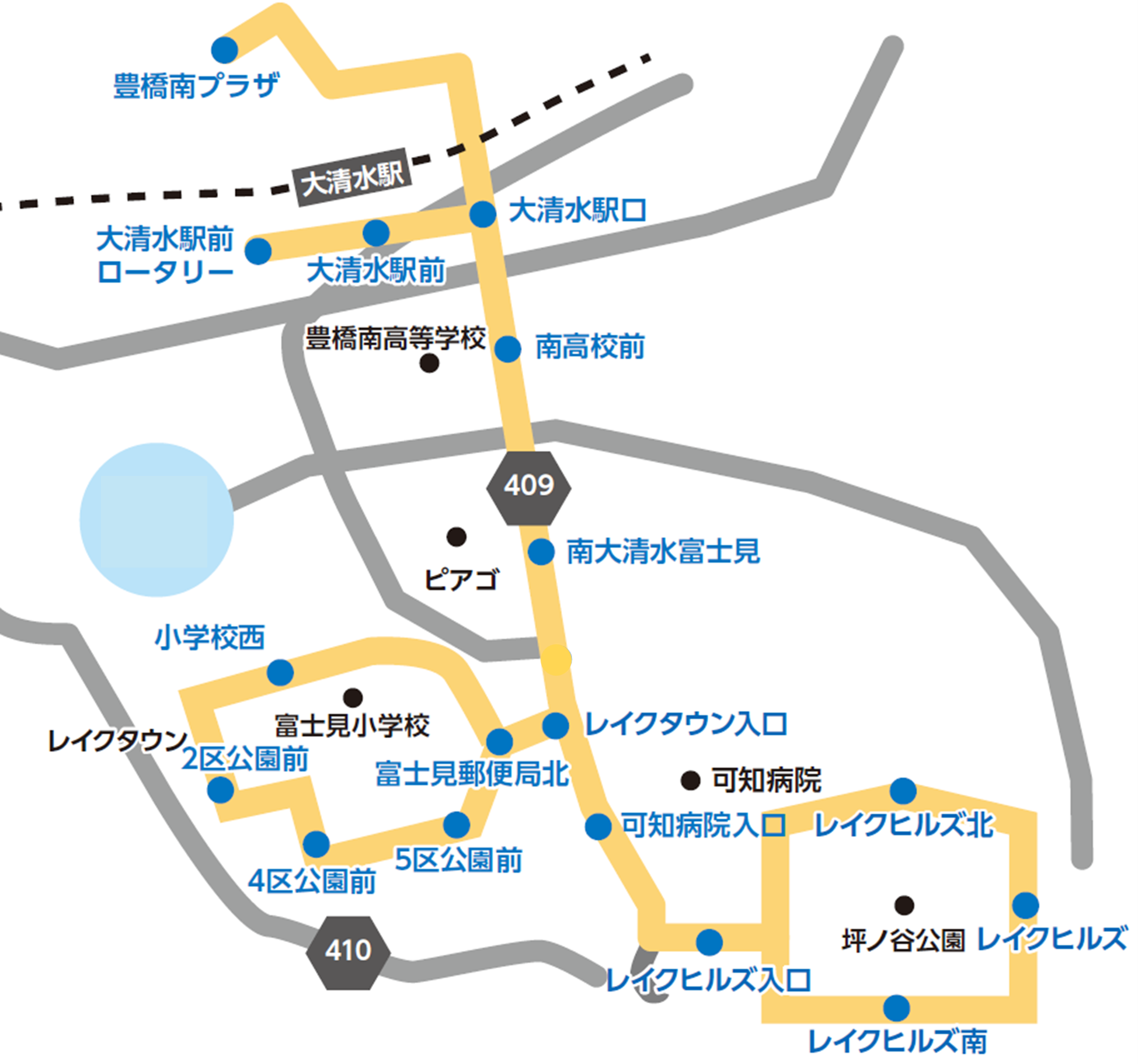 走行ルート:豊橋南プラザ~大清水駅~レイクタウン~レイクヒルズ