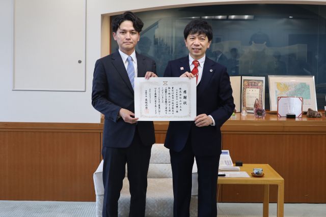 株式会社山口土木から豊橋市動物愛護センター「あいくる」の整備のため、企業版ふるさと納税を活用し、200万円の寄附をいただきました。4月14日(火曜日)に行われた感謝状贈呈式で、株式会社山口土木の山口取締役は、「動物と触れ合う機会の創出や、保護活動などの取り組みに共感し、このたび寄附をさせていただきます。」と話しました。