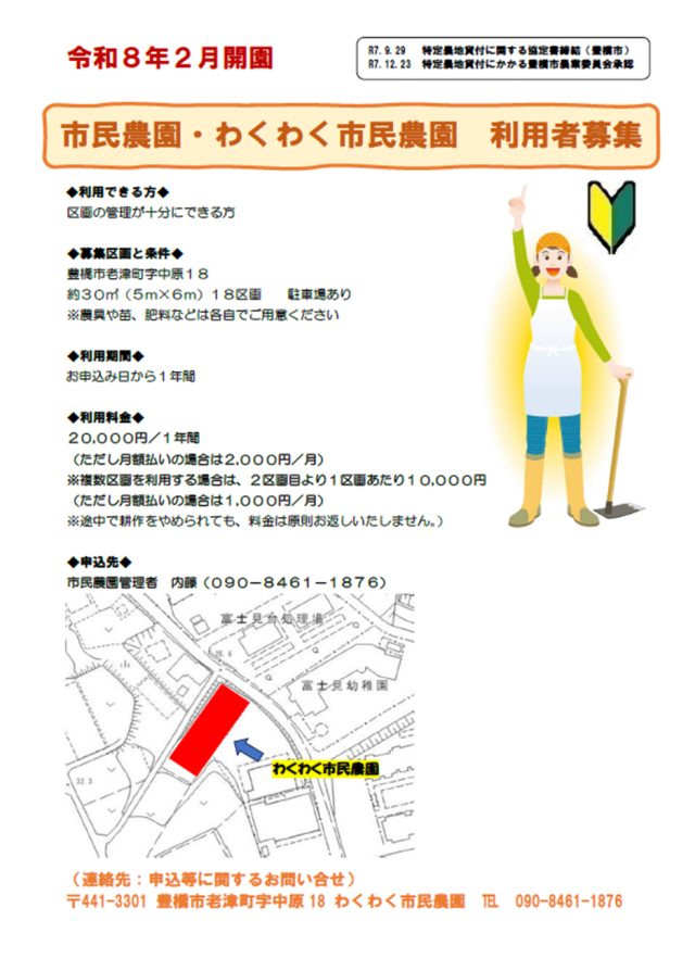 市民農園「わくわく市民農園」開設のお知らせ及び利用者募集について